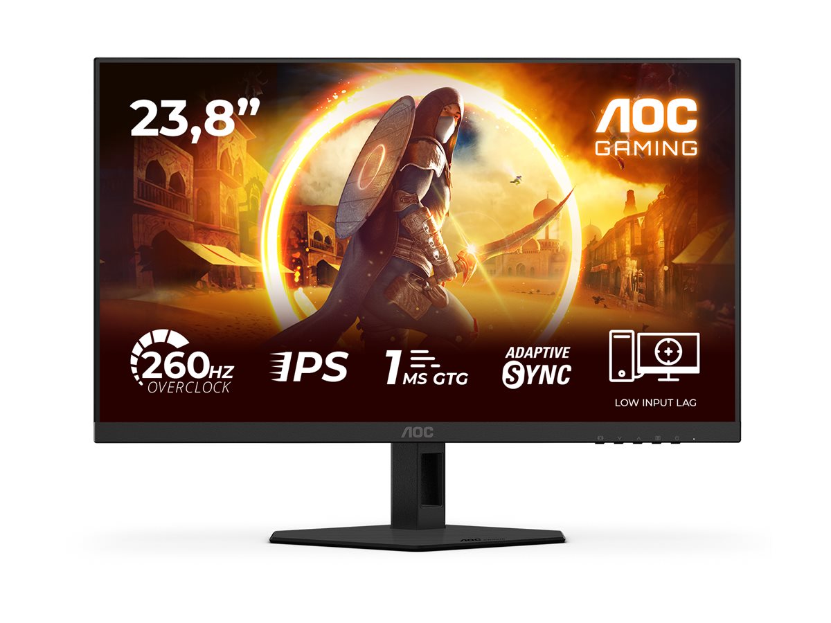 | Opis: | AOC Gaming 24G4ZRE - Monitor LED - gaming - 24" (23.8" widoczny) - 1920 x 1080 Full HD (1080p) @ 240 Hz - Fast IPS - 1000:1 - HDR10 - 0.3 ms - 2xHDMI, DisplayPort - czarny, czerwony |